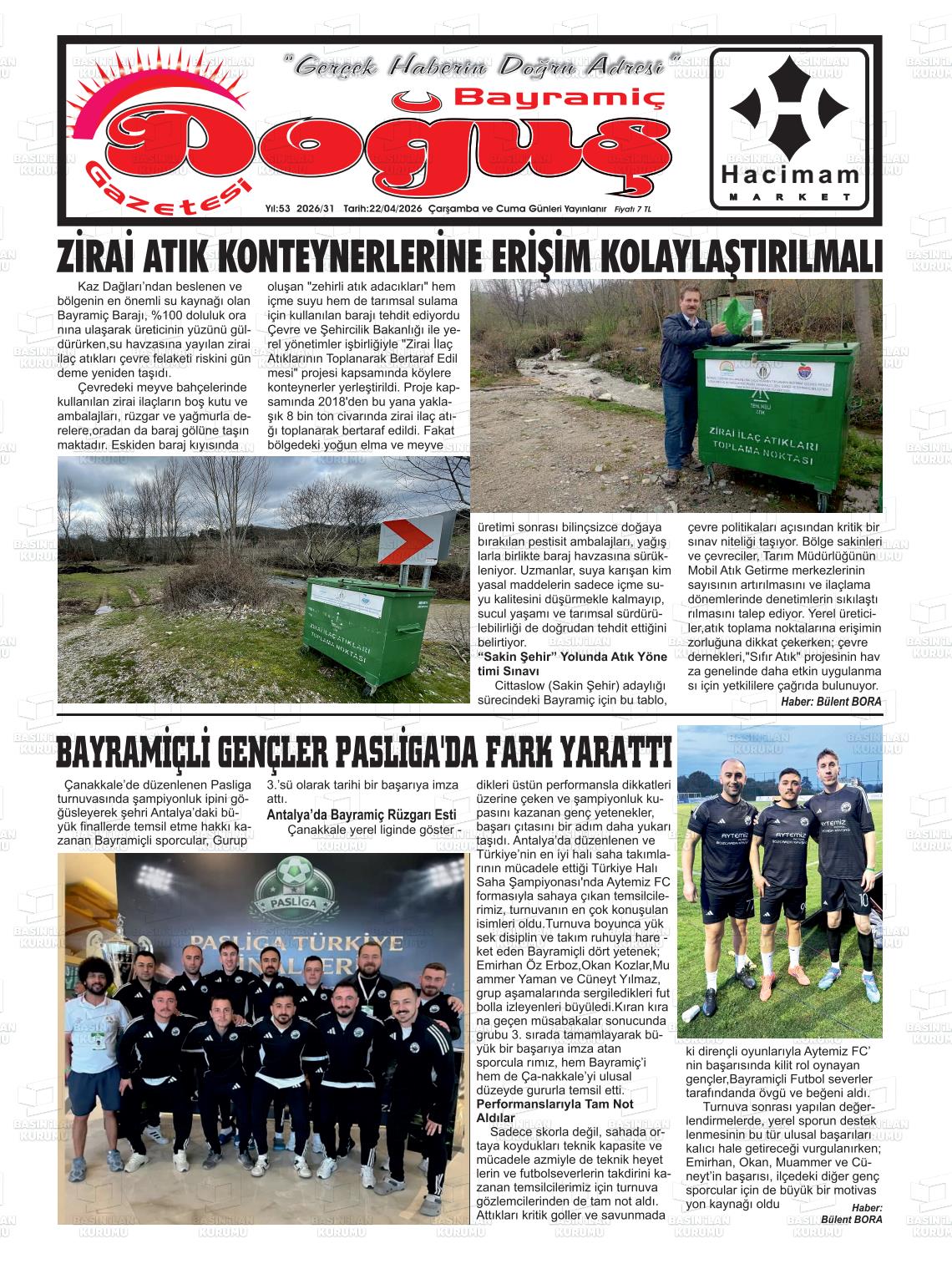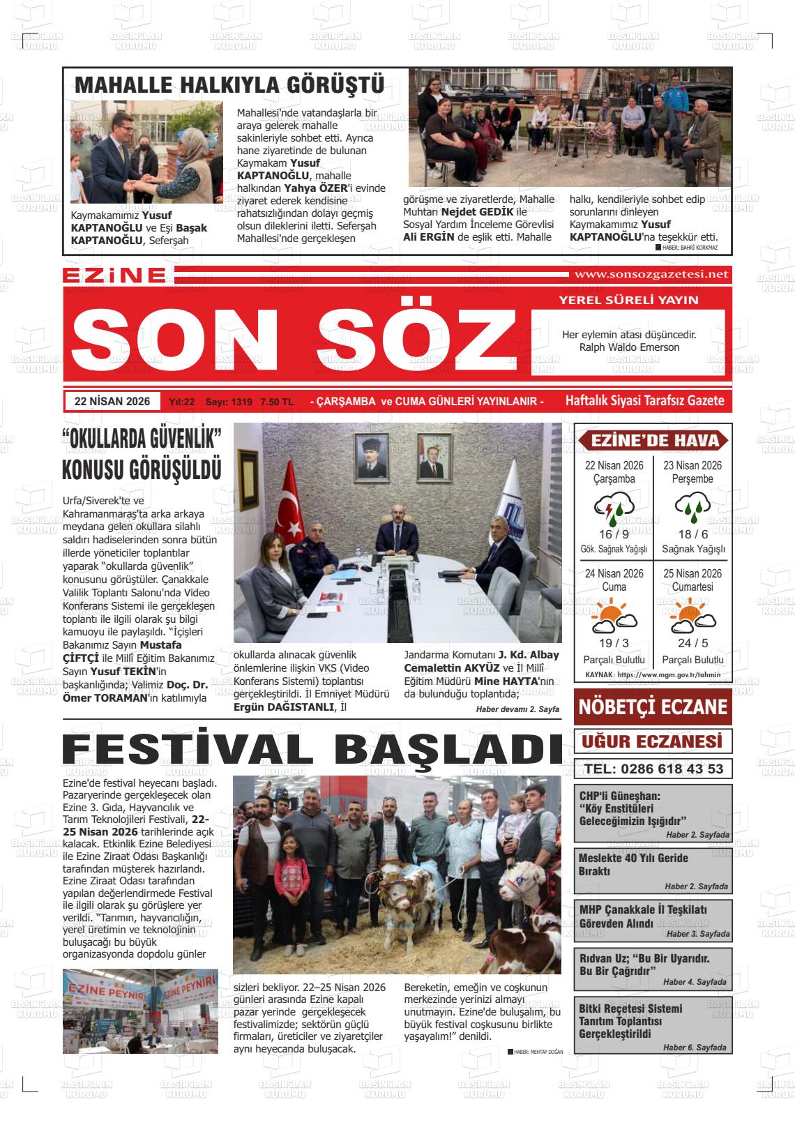 Çanakkale Yerel Gazeteleri 22 Nisan 2026, Çarşamba Günü Manşeti