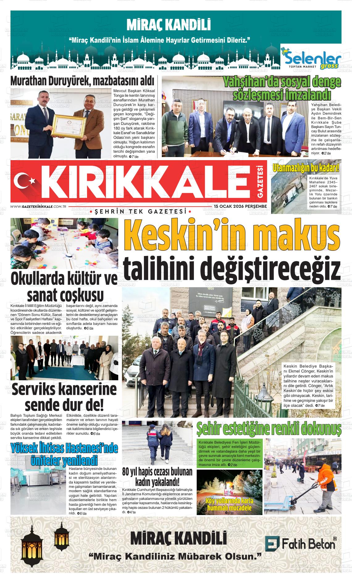 Kırıkkale Yerel Gazeteleri 15 Ocak 2026, Perşembe Günü Manşeti